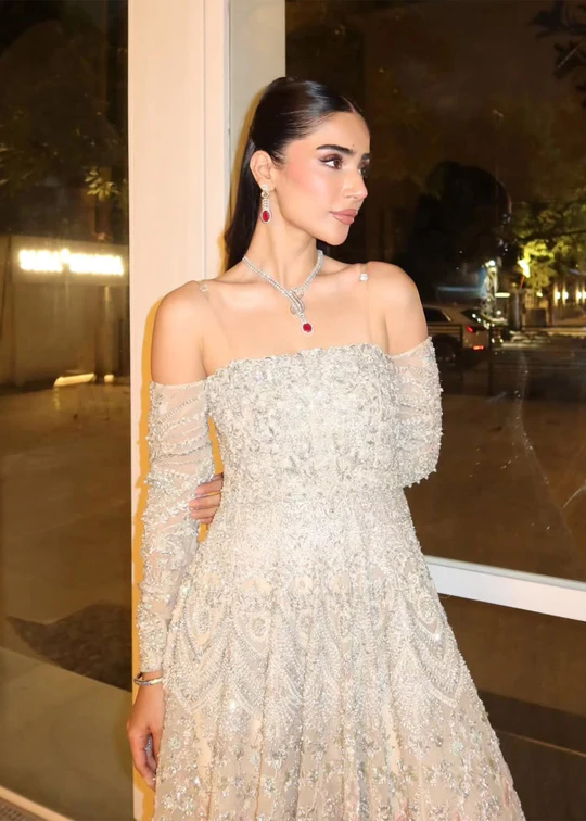 Move into a world of refined luxury with the Crystal Bloom Pakistani Bridal Lehnga Choli in a graceful ivory shade. Designed to reflect elegance and glamour, this bridal ensemble adds more charm and sophistication to your wedding look.
