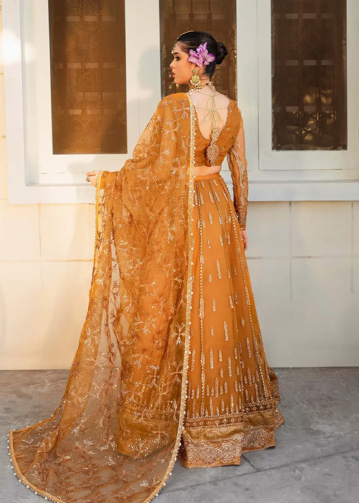 In conclusion, the Dhoop Kinaray Pakistani Bridal Organza Dress in Marigold Yellow is a stunning choice for brides seeking elegance, tradition, and individuality. Its luminous color, luxurious fabric, and intricate craftsmanship make it a timeless bridal ensemble for unforgettable wedding moments.
