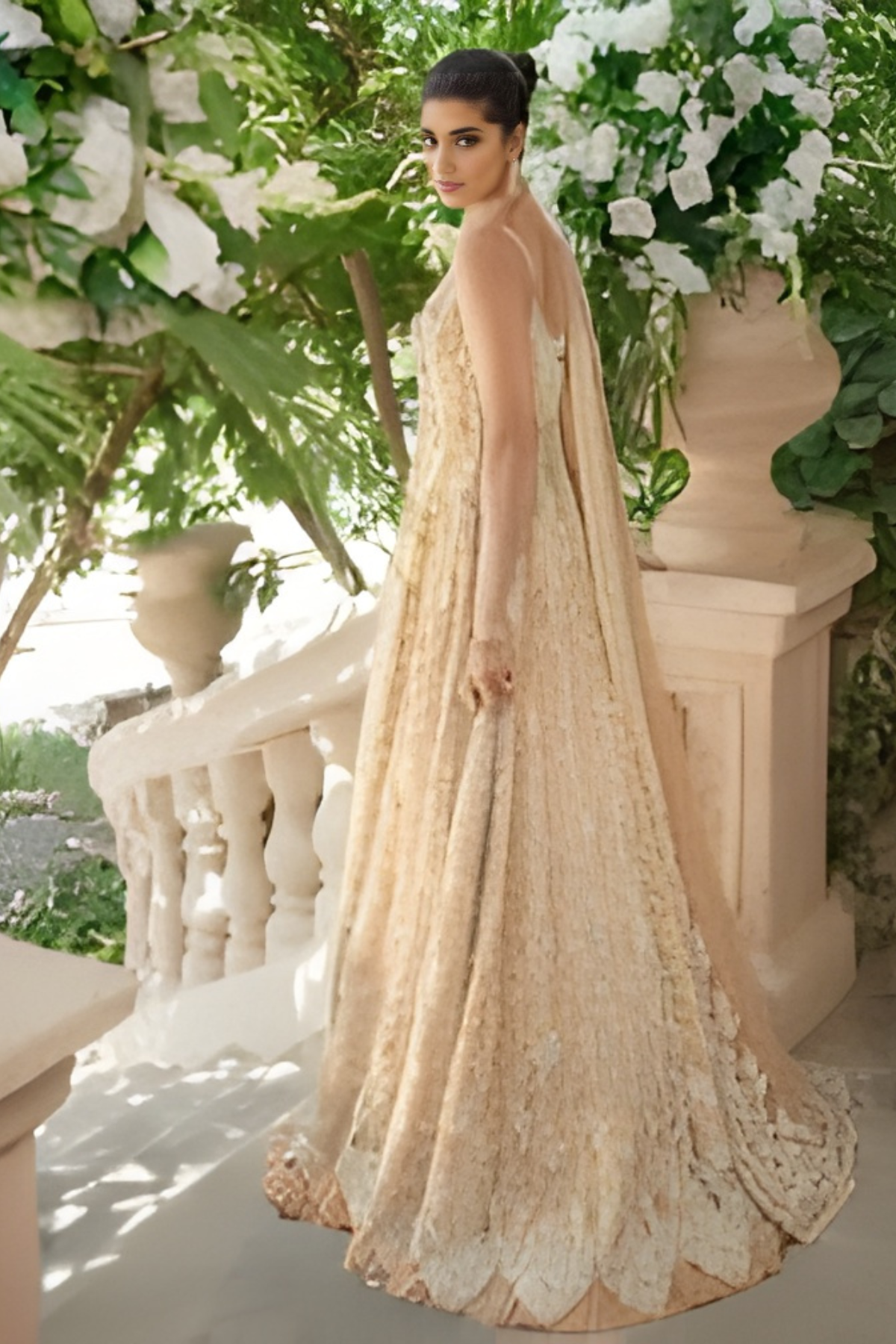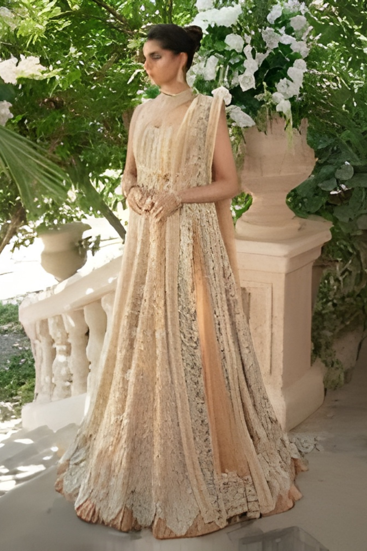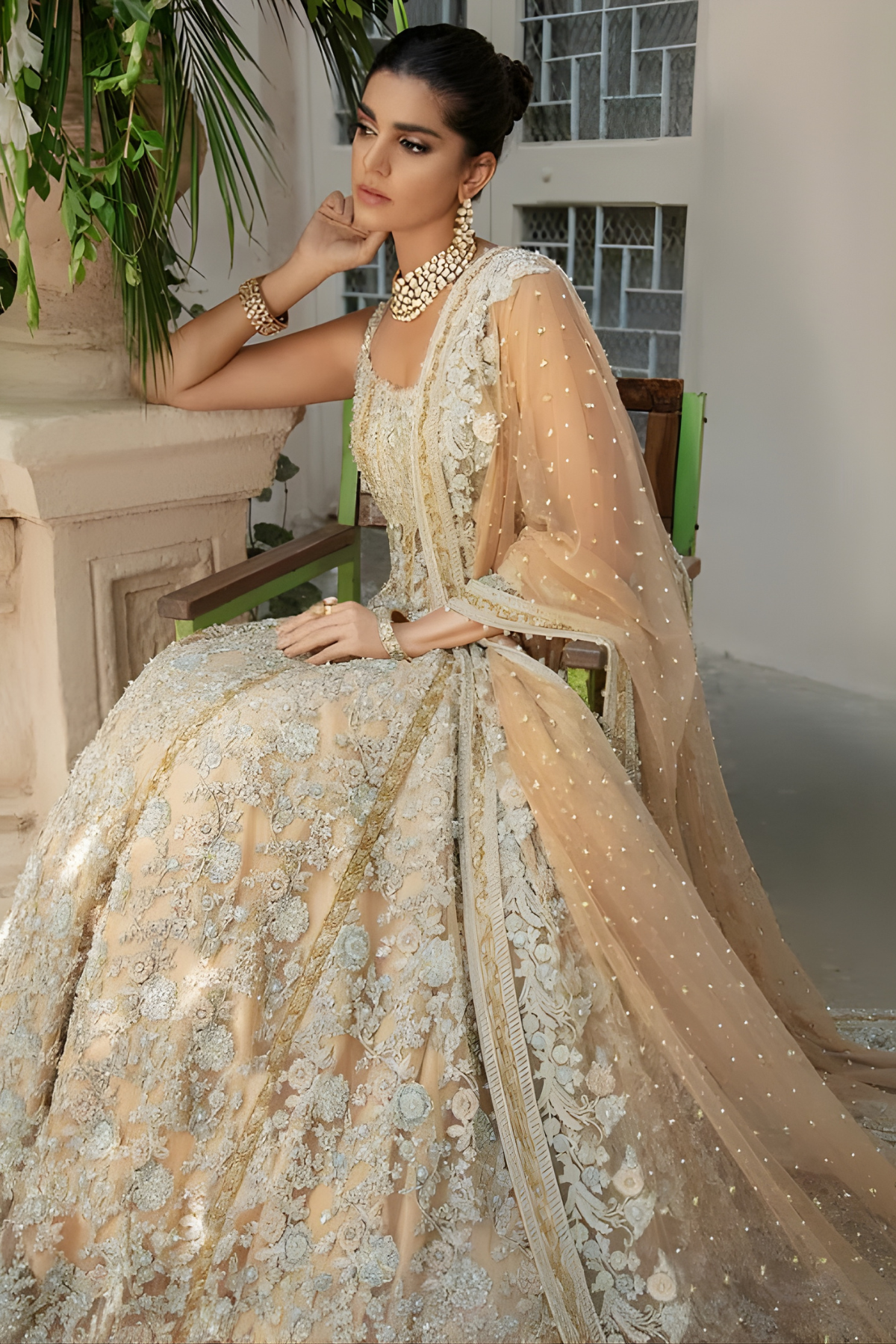 Move effortlessly and shine in this luxurious Pakistani Bridal Lehnga Gown Set, ideal for weddings and grand celebrations.