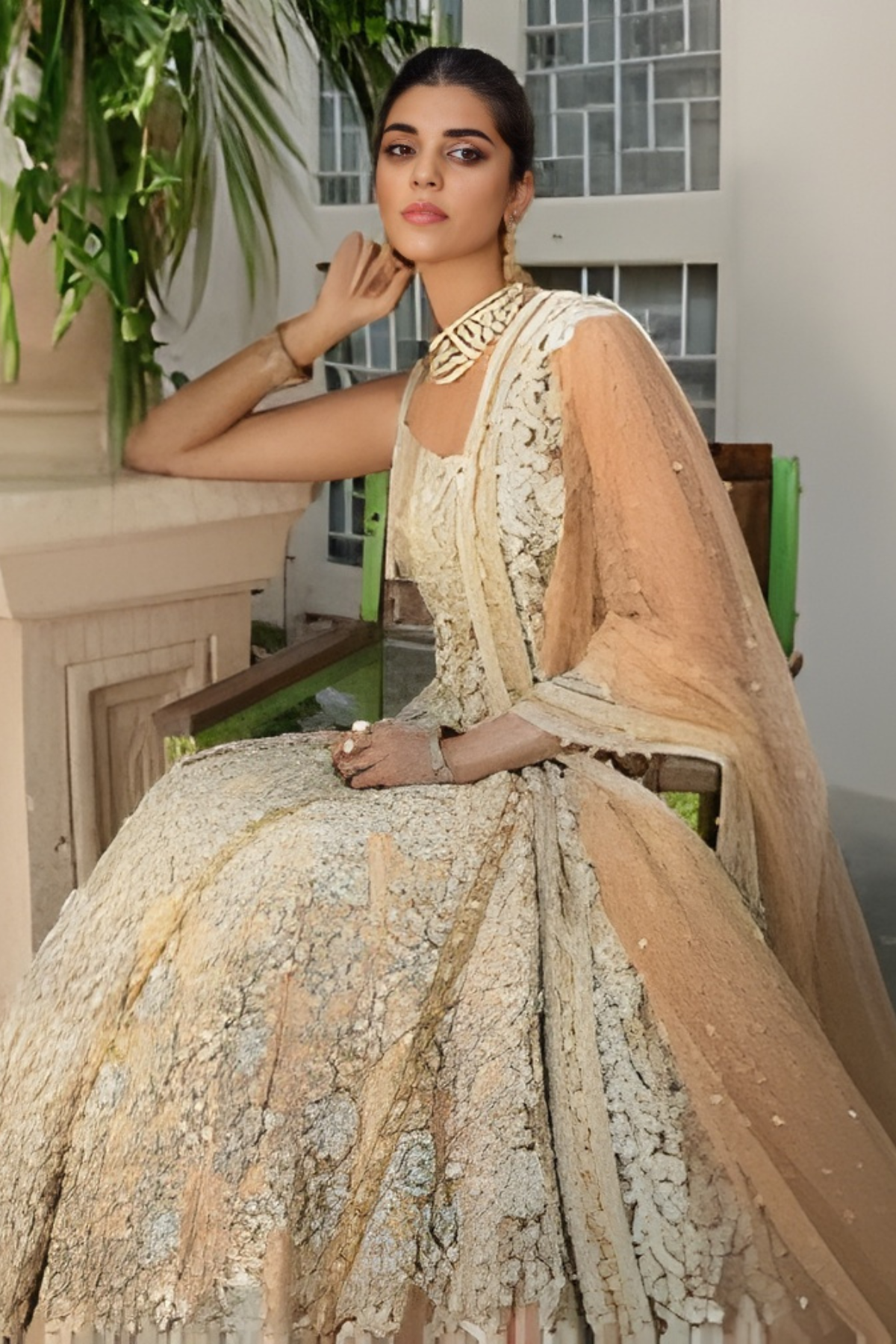 Paired with a soft and airy net dupatta, this set moves beyond ordinary bridal wear and creates a radiant, high-profile bridal look perfect for modern brides.