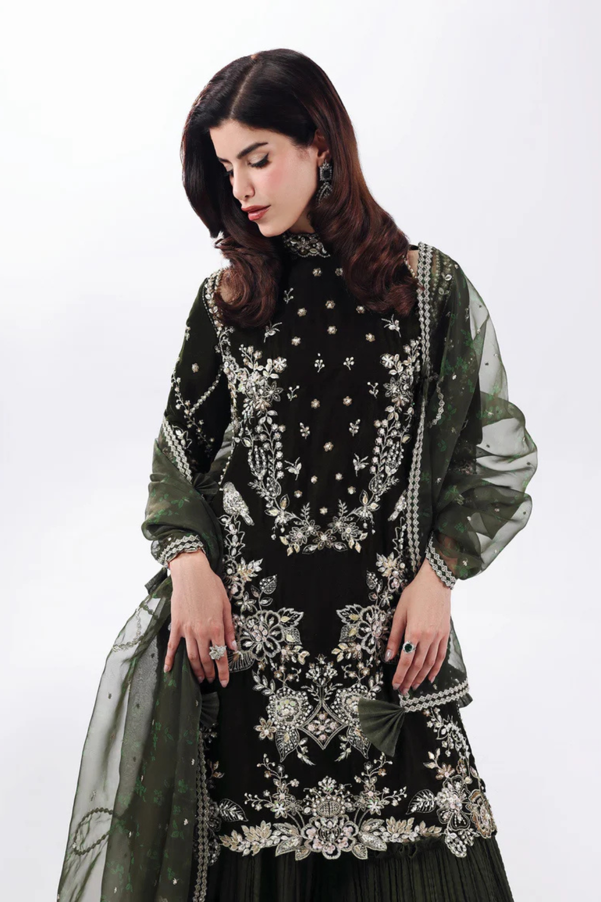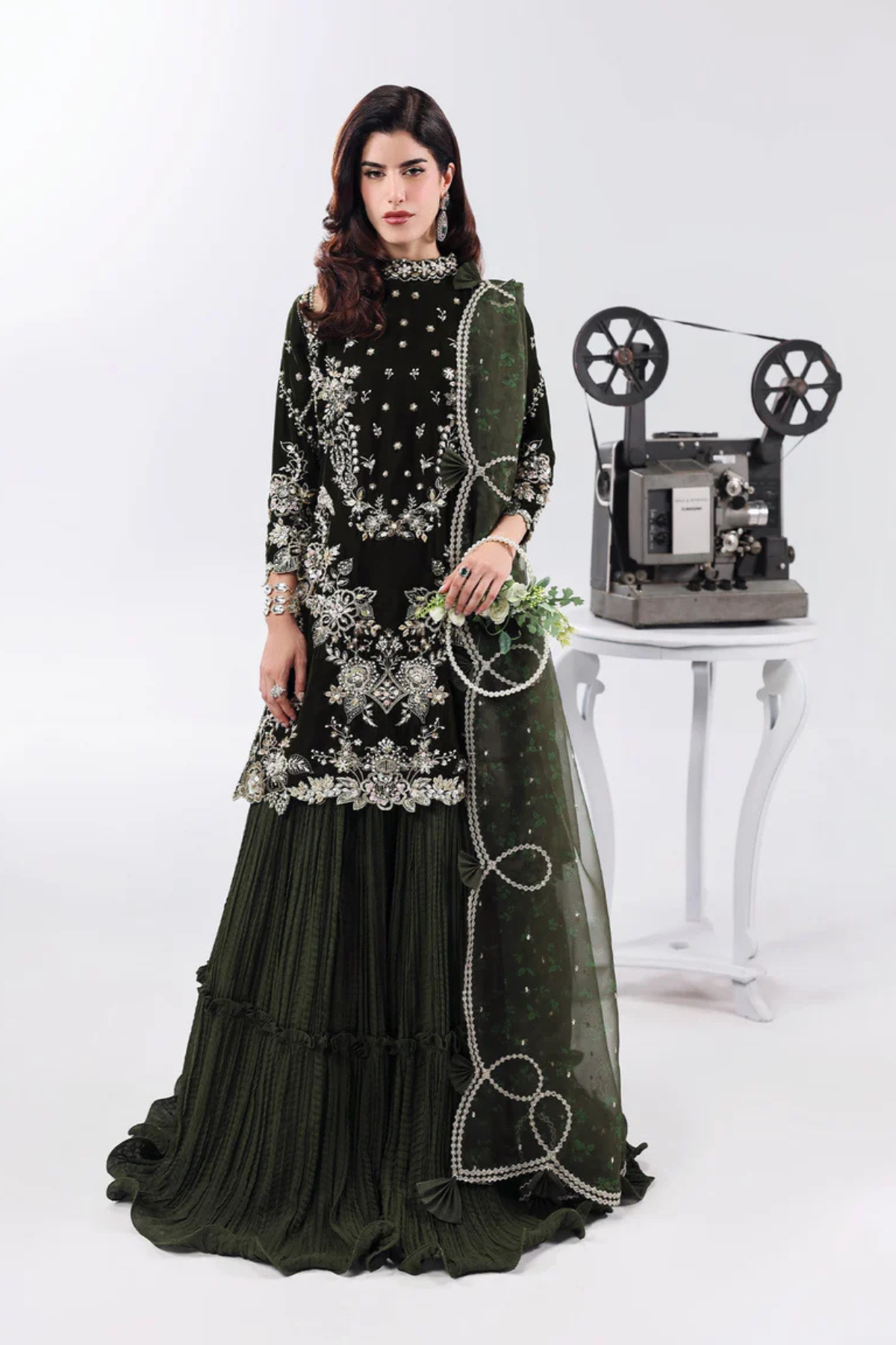 Step into timeless sophistication with the Dark Mehndi Embroidered Organza Short Shirt with Crushed Sharara – Sardinia. Designed for brides who love luxurious wedding ensembles, this Pakistani Bridal Organza Short Shirt Sharara reflects elegance, charm, and a modern bridal silhouette for your special day.