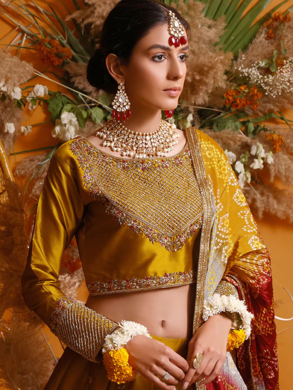 Pakistani Silk Mustard Lehenga Choli Outfit