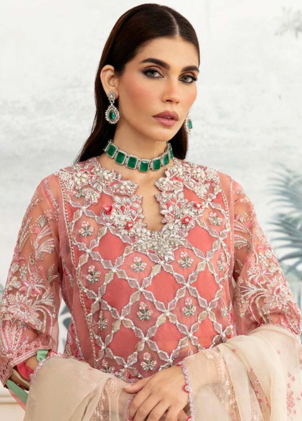 Pakistani Pink Embroidered Dress in a decorated long kameez pant style accomplishes the last bewitching look when matched with a patched embellished premium quality organza skin dupatta.You May also Like